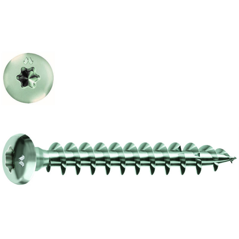 Vite specifica per il fissaggio di tutti i tipi di piastre e connettori per costruzioni in legno, consigliata per applicazioni all'esterno, grazie alla elevata resistenza alla corrosione - la cava TX permette un avvitamento senza slittamenti - il collare sottotesta ha la funzione di centraggio del foro, oltre ad una maggior resistenza meccanica - la punta ''CUT'' è ideale per l'avvitamento vicino ai bordi - trattamento di lubrificazione ''LUBEX'' per ridurre l'attrito al 50%, testa con impronta TORX