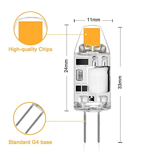 MUSUNIA Lampadina LED - G4 2W equivalenta alogeno 20W, 3000K Bianca caldo 160 lm, 12 V AC/DC G4, senza sfarfallio, non dimmerabile, 10 pezzi