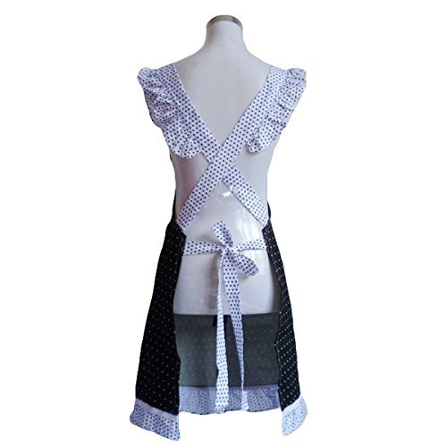 Musuntas Cute Princess Style Dots Pattern Falbala Women decorative kitchen cooking apron with 2 pockets Bowknot (Black + White) by Musuntas