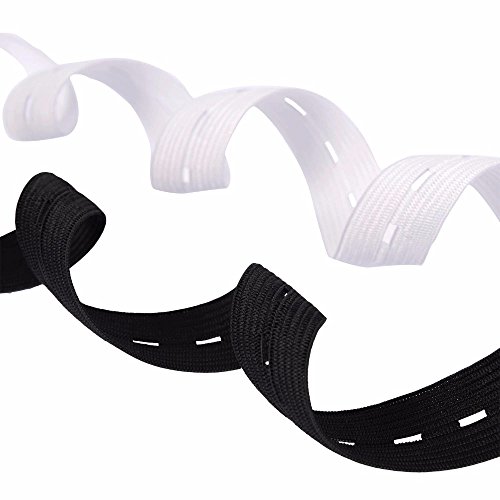 Musuntas - Fascia elastica piatta lunga 11 m, con foro per asole, per cucito, accessori fai da te, 2 pezzi, 5,5 m di colore bianco, 15 mm di larghezza