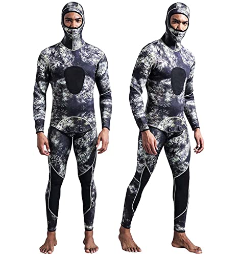 Muta Sub Uomo con Cappuccio, Mimetica Muta Subacquea 3mm Neoprene 2 Pezzi Termiche Invernale Wetsuit per Nuoto Immersioni Surf Snorkeling,Camouflage-M