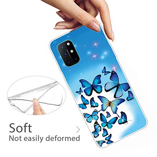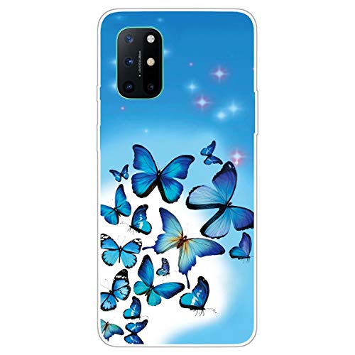 MUTOUREN Cover per Oneplus 8T Custodia in Silicone TPU Trasparenti Ultra Sottile Antigraffio Antiurto Protettivo Case con Pellicola Proteggi Schermo, Farfalle Blu