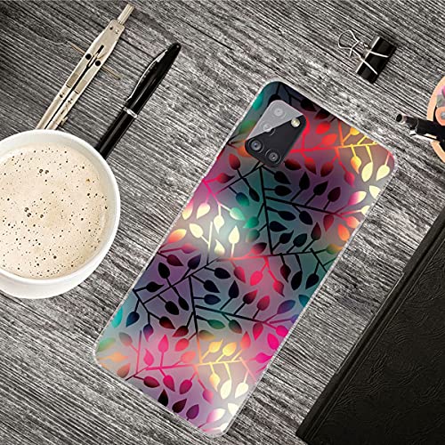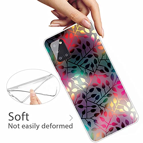 MUTOUREN Cover per Samsung Galaxy A31 Custodia in Silicone TPU Trasparenti Ultra Sottile Antigraffio Antiurto Protettivo Case con Pellicola Proteggi Schermo, Foglie Colorate