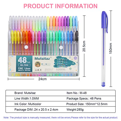 Mutsitaz Set di 48 Glitterate Penne Gel Colorate per per Scrittura,Colorare o Manga, Disegnare (12 Metallico + 12 Glitterato + 12 Neon + 12 Pastello)