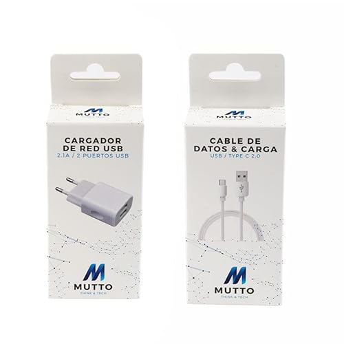 MUTTO Confezione caricabatterie da parete universale da 5 V2A/10 W con 2 porte USB + cavo USB tipo C 1 m caricatore tipo C carica rapida e sincronizzazione