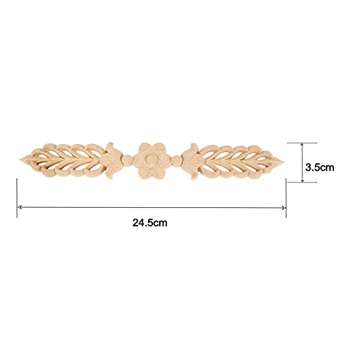 MuxSam - Set di 4 pezzi in legno scolpito rotondo, applique vintage da scultura Onlay, cornice per mobili, artigianato, decorazione fai da te, vintage, 24,5 x 3,5 cm