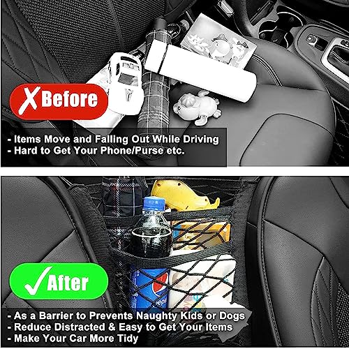 MUYAPAY Rete per Auto a 3 Strati, Rete portaoggetti per seggiolino Auto con 5 Mini Ganci, Organizer Tascabile in Rete per Sedile Anteriore separatore per Schienale seggiolino Auto, SUV