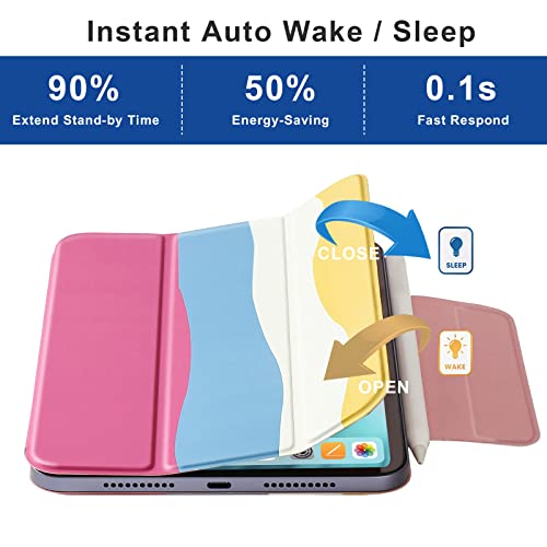 MuyDoux Custodia per iPad Mini 6a Generazione, iPad mini 6 Cover Magnetica 8,3 Pollici 2021, Auto Sveglia/Sonno, Design Monopezzo Ultra Sottile Leggera ed Elegante, Arcobaleno