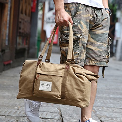 Muzee Tela Sacchetto di Viaggio, Borsa a Tracolla, Borsa da Spalla per i loisirs, i Viaggi e i Giovani nel Look Vintage, Coton Kaki