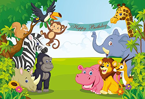 MUZI, fondale con animali disegnati a tema giungla e safari, ideale per baby shower, feste di compleanno, sfondo per foto, dimensioni 200 x 150 cm, codice articolo XT-6751