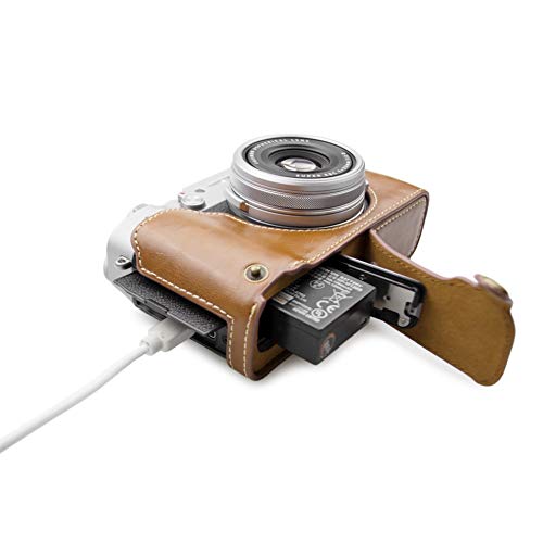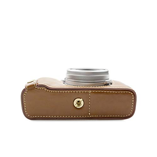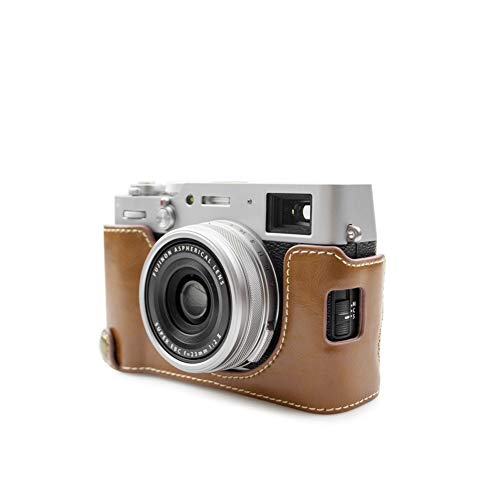 MUZIRI KINOKOO - Custodia protettiva per Fuji X100V, custodia inferiore per Fujifilm X100V, mezza custodia protettiva, Marrone, Retro