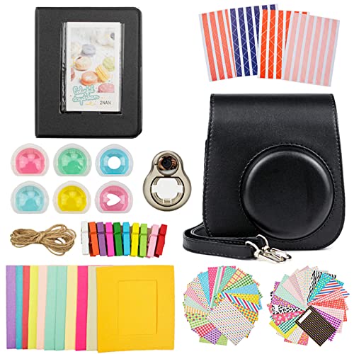 MUZIRI KINOKOO Instax Mini 11 Accessori Bundle Compatibile per Fujifilm Instax Mini 11 Custodia Protettiva con 8 Accessori Kit Borsa Fotocamera, 6 Lenti Filtro e Obiettivo Selfie, Nero