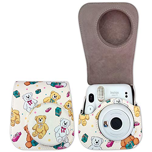 MUZIRI KINOKOO Mini 11 Custodia protettiva compatibile per Fujifilm Mini 11 Instant Camera Custodia in pelle PU con tracolla, Orso colorato.