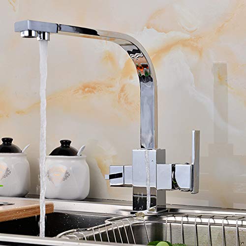 Muzyo Rubinetto Reverse Miscelatore del dispersore di osmosi a Tre Vie a 3 Vie Rubinetto Filtro per l'acqua Brass Construction Nero Tri Flusso Rubinetto della Cucina, 1