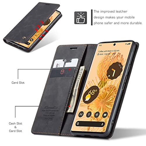 Mvced Cover per Google Pixel 6 Pro,Flip Custodia Caso Libro Pelle PU e TPU Silicone Antiurto,Nero