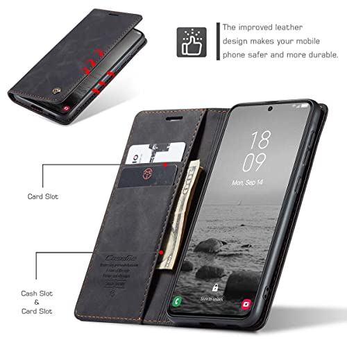 Mvced Cover per Samsung Galaxy S23,Flip Custodia Caso Libro Pelle PU e TPU Silicone Antiurto,Nero