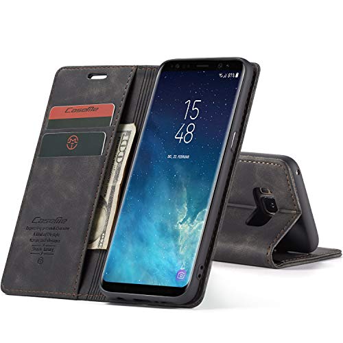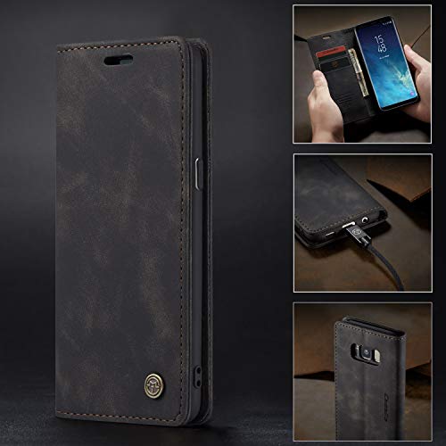 Mvced Cover per Samsung Galaxy S8,Flip Custodia Caso Libro Pelle PU e TPU Silicone Antiurto,Nero