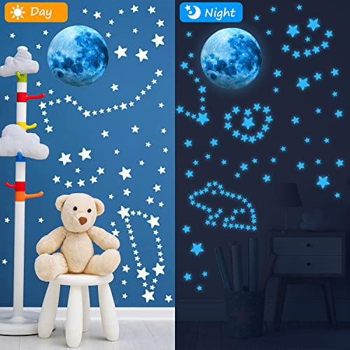 Materiale sicuro al 100%: l'adesivo con stelle e luna è realizzato in PVC atossico di alta qualità, è assolutamente sicuro e affidabile. È il bellissimo dipinto decorativo durante il giorno e lo spegnimento della luce di notte, ti porta il magico cielo stellato reale, dona alla tua casa un fascino infinito.