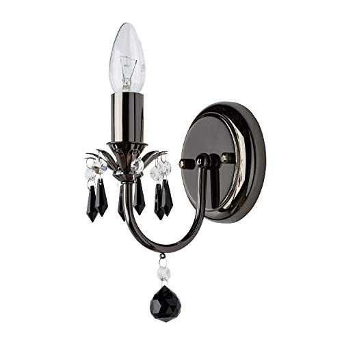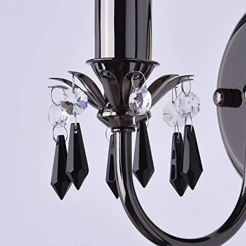 MW-LIGHT 313020301 Applique da Parete Cendele Candelabro Classica Metallo Colore Nichel Pendenti Gocce Cristallo Nero E14 1 luce x 60W
