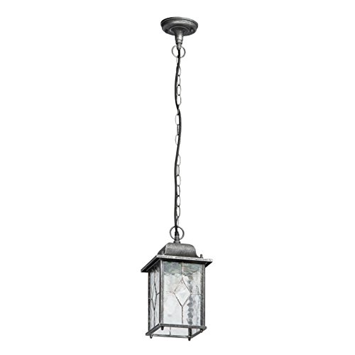 MW-LIGHT 813010401 Lampada Pendente Esterno Lanterna Colore Nero Soffuso Argento Metallo Vetro Scannellato Anticato in Giardino 1 x 95W E27 IP44 Escl