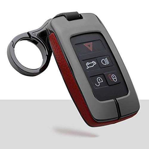 MWBLN Guscio chiave auto,Anello portachiavi in pelle per portachiavi auto, per 2018 Land Rover Range Rover Sport Evoque Velar Discovery 5 portachiavi con protezione tipo B-NeroRosso