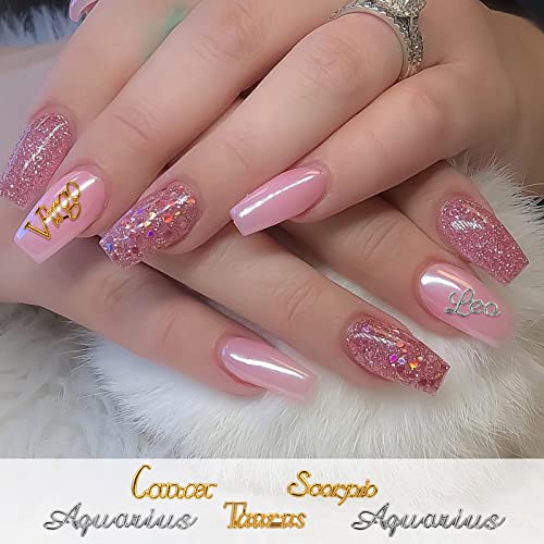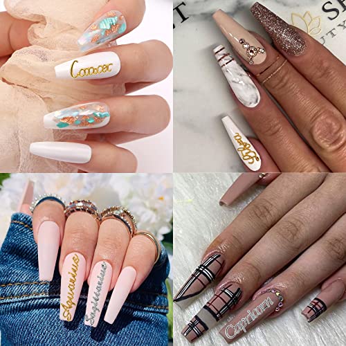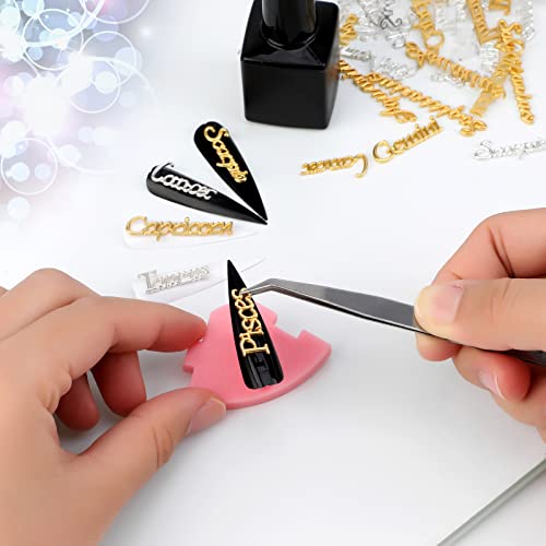 Mwoot 96pcs Twelve Constellation Nail Charms Set, Alloy Flatback Word Message Nail Charm Pendant for Nail Art Decoration (Gold, Silver)