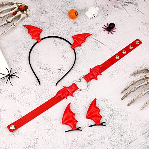 MWOOT Set di Accessori per Costumi da Pipistrello, Fermagli Capelli con Ali di Pipistrello, Fascia con Ali di Pipistrello, Girocollo di Pipistrello per Festa dei Costumi Halloween Donne Rosso