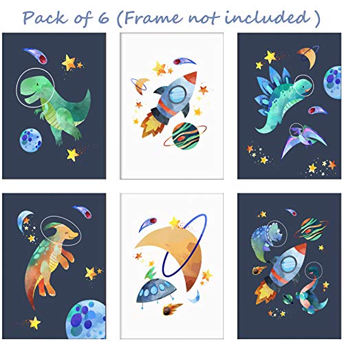 MWOOT Astronauta Dinosauro Manifesto per Decorazione Parete, 6 Pezzi Spazio Pianeta Stampa Artistica da Parete (SENZA CORNICE), Poster Tela per Bambini Camera Letto Immagine Parete (20 X25 CM)
