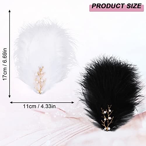 MWOOT Fermagli Capelli Piume, 4 Pezzi Fascinator Piumati per Costumi degli Anni 20, Fermaglio Capelli Piuma Bianca Nera per Donne Ragazze Pattinando Balletto Danza Classica