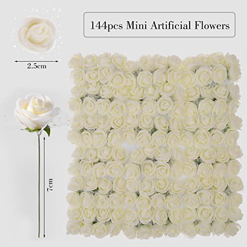 MWOOT Fiori Artificiali Bianco, 144 Pezzi Rosa Finta, Fiorellini per Bomboniera Matrimonio, Piccolo Fiore Rosa Finto per Cerimonia Nuziale Fermagli per Capelli, 2.5CM Teste di Rose Finti Fai Da Te