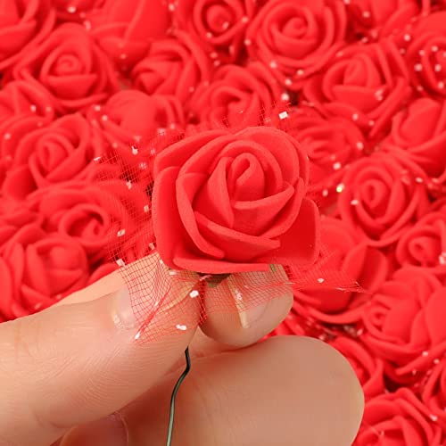 MWOOT Fiori Artificiali Rosso, 144 Pezzi Rosa Finta, Piccolo Fiore Rosa Finto per Cerimonia Nuziale Fermagli per Capelli, Accessori per Cerchietti, 2.5CM Capolini Finti Fai Da Te
