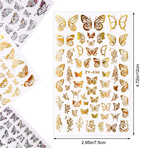 MWOOT 8 Fogli Butterfly Nail Art Stickers,3D Farfalla Design Metallo Adesivi Unghie,Nail Art Decalcomanie Autoadesivi per Nail Tip Decorazione
