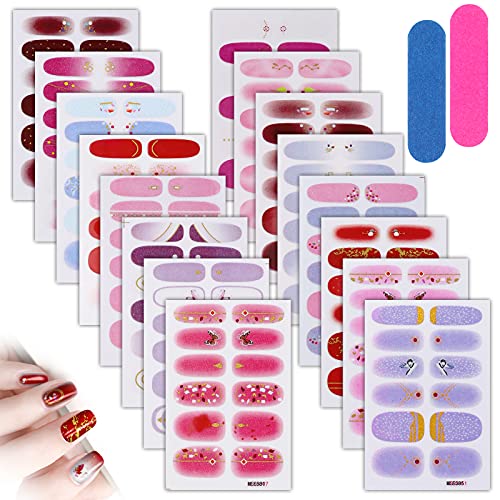 La confezione include: 16 fogli di adesivi per unghie completi con lima per unghie da 2 pezzi, design di tendenza della moda.