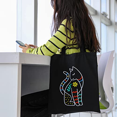 MWOOT Nero Shopping Bag di Cotone,Gatto Borsa Shopper Donna,Tote Bag Tela,Borsa Tela,Riutilizzabile del Sacchetto Manico Ecocompatibile per Lavoro Ragazza Scuola