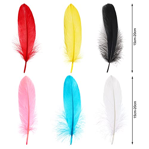 MWOOT 180 Pezzi Artigianato Piume Colorate, 6 Colori Mini Piume (15-20cm) per Orecchini DIY Gioielleria Cacciatore Sogni Fare decorazioni Casa Bianca Nero Rosso Giallo Rosa Blu