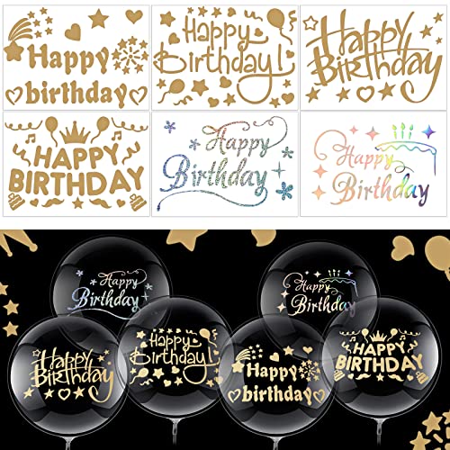 MWOOT 6 Pezzi Compleanno Felice Palloncino Adesivi Happy Birthday Balloon Stickers Kit, Bobo Lettera Decalcomanie Compleanno Pasters Forniture per Fai Da Te Festa Matrimonio Celebrazione Decorazione
