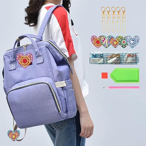 MWOOT 5 Pezzi DIY 5D Cuore d'Amore Portachiavi Pittura Diamante, Doppia Faccia Fai da Te Diamond Art Painting Keychain, Heart Strass Pittura da Numer Ciondolo per Souvenir Regali Bagagli Decorazione
