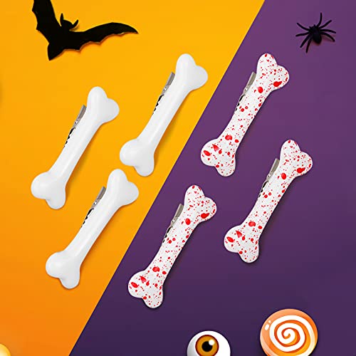 MWOOT 8 Pezzi Fermagli Capelli Osso Bianco e Rosso, Halloween Cosplay Costume Decorativo Teschio Scheletro Fermacapelli per Decorazione Capelli Delle Ragazze Delle Donne, Accessori Capelli Halloween