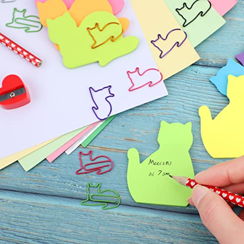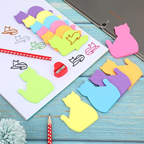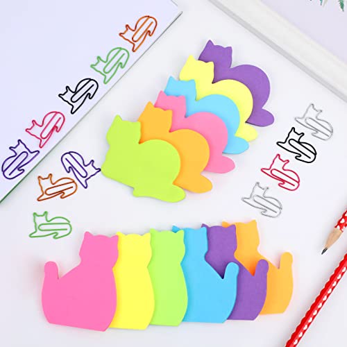 MWOOT 360 Pezzi Gatto Set di Foglietti Adesivi con 12 Pezzi Graffette, Gatto Carino Blocchetti Memo Adesivi, Accessori Forniture di Cancelleria Ufficio Scuola per Donna Ragazze, Sticky Notes Set