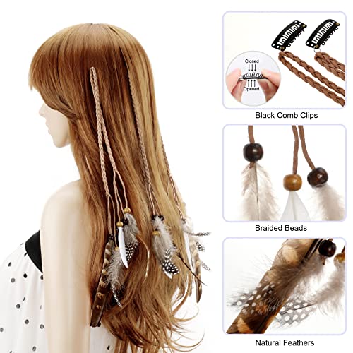 Estensioni dei capelli della piuma della Boemia: copricapo in corda di canapa con nappa con piume e perline naturali, che possono decorare piacevolmente i tuoi capelli e renderli più affascinanti e accattivanti, adatti per la maggior parte dei colori dei capelli.