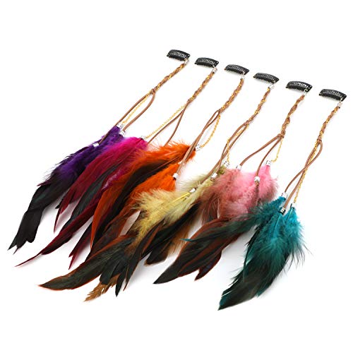 MWOOT 6 Pezzi Mollette per Capelli Piuma, Estensioni dei Capelli Piuma, Bohemian & Indian Copricapo di Piume, Festival Cosplay di Halloween Accessori - Stili a Catena