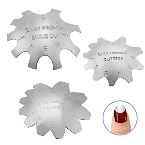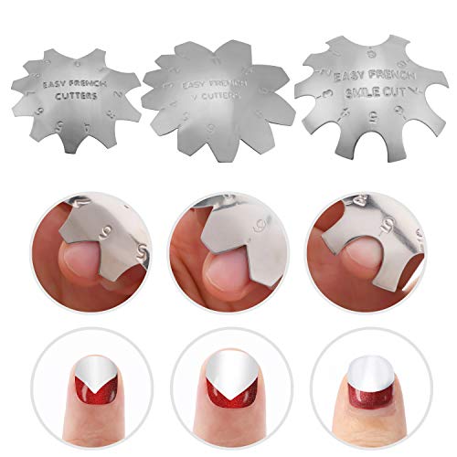 MWOOT 3 Pezzi Nail Art Modello Piastra Edge Trimmer,3 Forme Linea Sorriso Francese Fresa Strumento di Stencil di Nail Art per Acrilico Gel UV Model,Stile 2