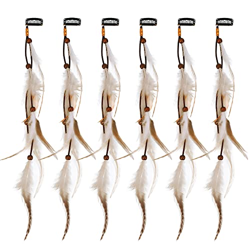 MWOOT 6 Pezzi Piuma Estensione dei Capelli, Piuma Mollette per Capelli, Donne Costume di Halloween Accessori per capelli, Bohémien Hippie Tribale Nativo Copricapo di Piume Accessori