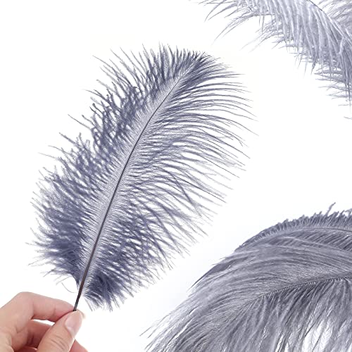 MWOOT 10 Pezzi Piuma di Struzzo, 10-12pollici (25-30cm) Grandi Naturale Piume per la Decorazione Domestica di Nozze, Vacanza Festa (Grigio)
