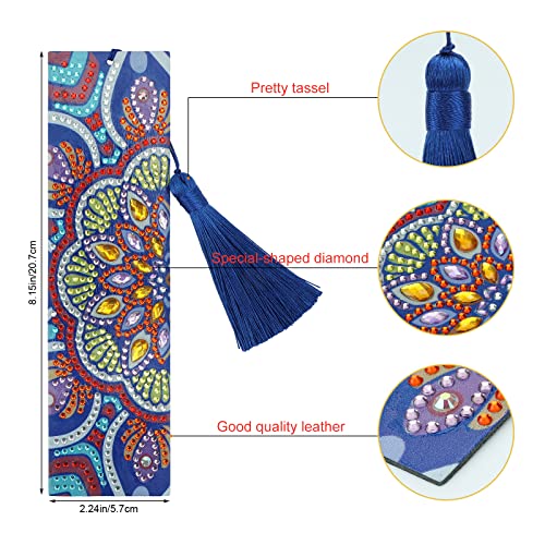 MWOOT 2 Pezzi Segnalibri di Diamante Pittura, 5D Mandala Diamond Art Painting Bookmarks, Kit Segnalibro con Nappa Cuoio Dipingi per Numero per Bambini Adulti Scuola Ufficio Compleanno Fai Da Te Regalo