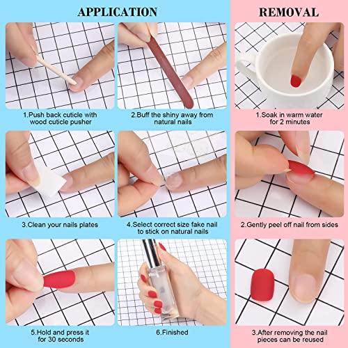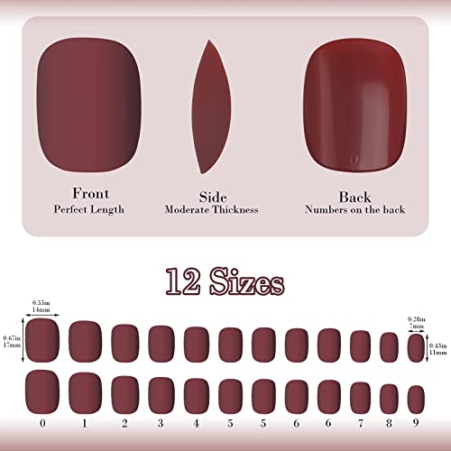 Mwoot 144 Pezzi unghie finte colorate corte rotonde finte, finte a copertura completa per donne con lima per unghie Stick per unghie, Matte Press on French False Nail