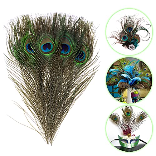 MWOOT 30 Pz Piume Pavone, Piume Occhio Pavone Verde per Artigianato Artistico fai da te, Piume Coda Pavone per Carnival Revelry Masquerade Costume Wedding Holiday Party Decoration (28-32CM)