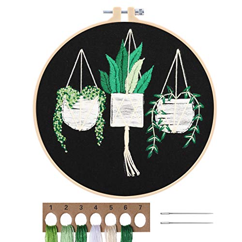 MWOOT Ricamo Starter Kit Cucire Accessori,Kit per Ricamo Punto Croce Embroidery Starter per Adulto Principiantii (Piante Fiori),Nero