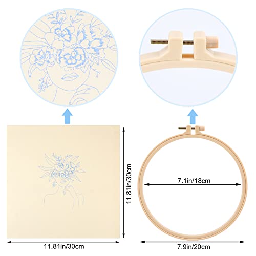 MWOOT Kit Ricamo Starter con Motivo Donna,Set per Ricamo Punto Croce Embroidery Starter per Adulto Principianti
