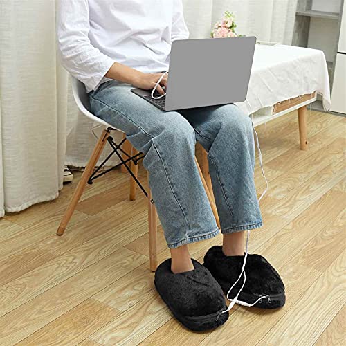 MWYS Scarpe riscaldate in Velluto Piedi Caldi Scarpe Calde riscaldano elettricamente Scarpe Ricaricabili USB Pantofole Calde Lavabili Unisex (Color: Black)